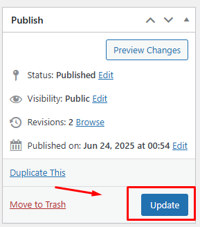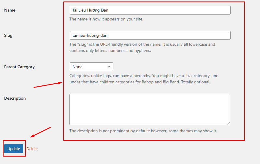 • Sau khi chỉnh sửa xong → Nhấn Update.