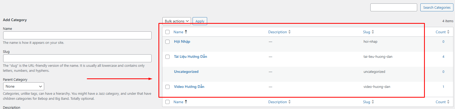 • Sau đó nhấn Add Category để hoàn tất thêm chuyên mục.