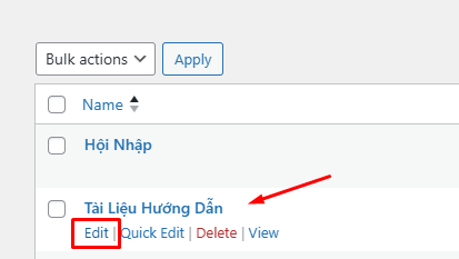 Bước 2: Rê chuột vào Categories cần chỉnh sửa → Nhấn Edit