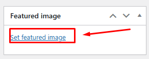 • Chọn mục Featured Image → Nhấn Set featured image → Chọn ảnh từ thư viện hoặc tải lên.