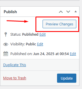 Sau khi Pubish chọn Preview Changes để xem bài viết đã được đăng.