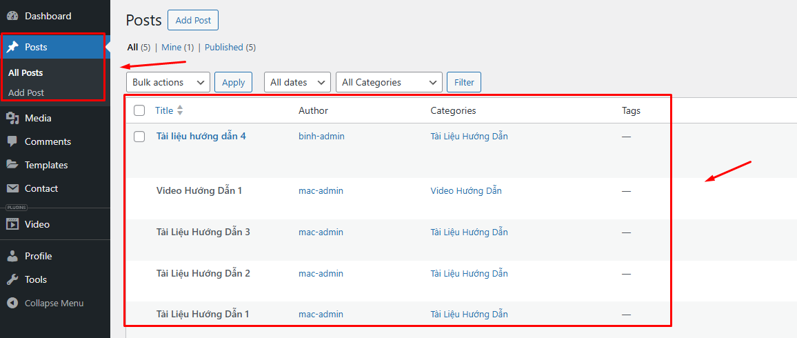 • Trên thanh menu bên trái → Click PostsAdd Post