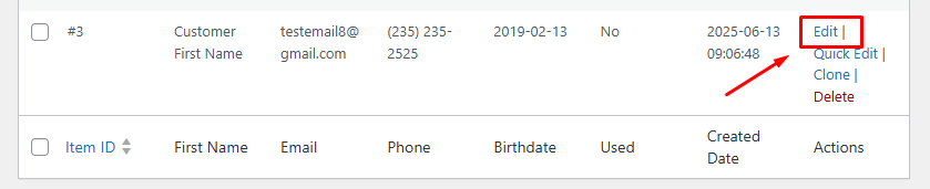 Chọn Edit ở khách hàng cần sửa thông tin