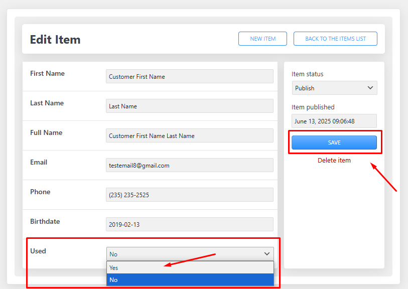 Lưu ý: Nếu khách hàng đã được áp dụng chương trình ưu đãi tại tiệm sau khi đăng ký A/C có thể chị Yes trong mục Used để quản lí khách đã được nhận ưu đãi hay chưa sau đó chọn SAVE.