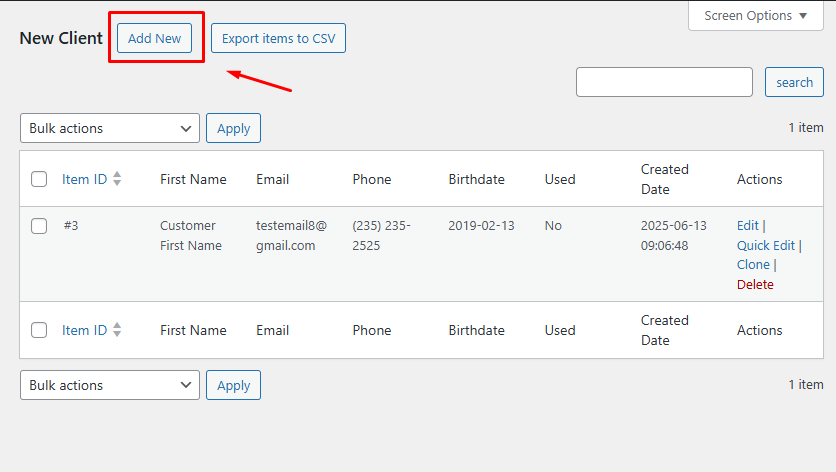 Click vào New Client > Add New