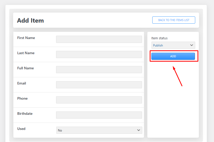 Nhập thông tin của khách hàng tương ứng vào các ô tương ứng > Sau đó click vào ADD