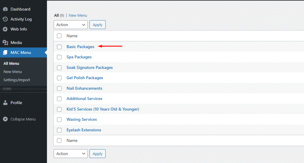 Click vào MAC Menu sẽ xuất hiện tất cả các danh mục chính