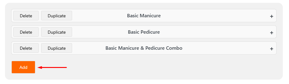 Ví dụ A/C muốn thêm sửa hay xóa 1 dịch vụ con trong danh mục chính là Basic Packages thì click vào nó > Kéo xuống dưới